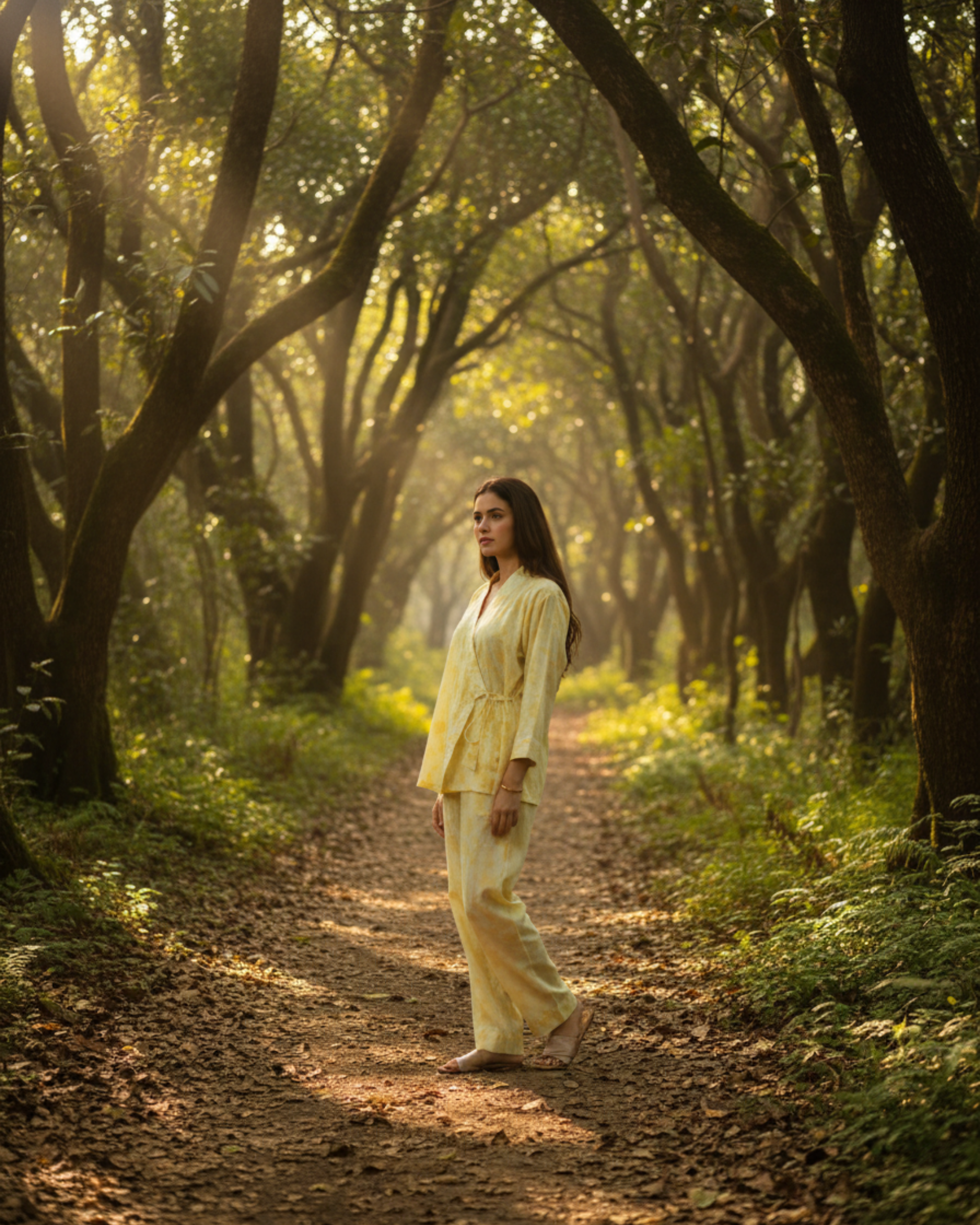 - 🧵 Key Details: Fabric: 100% Cotton | Color & Print: Yellow base with all-over print | Style: Wrap-style.